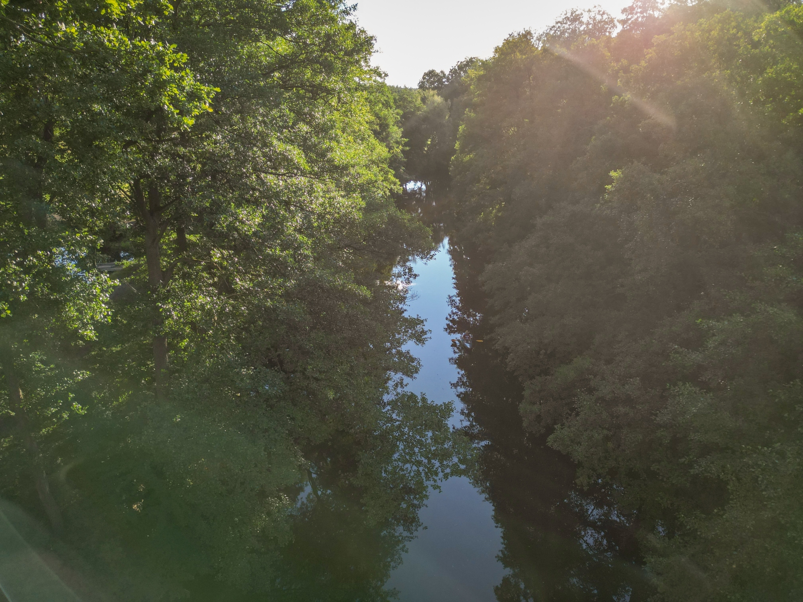 Der nächste Morgen startete bei strahlender Morgensonne mit einer wirklich schönen kleinen Runde entlang des Kanals. Die Landschaft hatte etwas von einem Dschungel. Überall üppiges Grün. Und leider auch Mücken. Die nutzten natürlich die Gelegenheit mir zu zeigen, warum ich sie nicht ausstehen kann … .