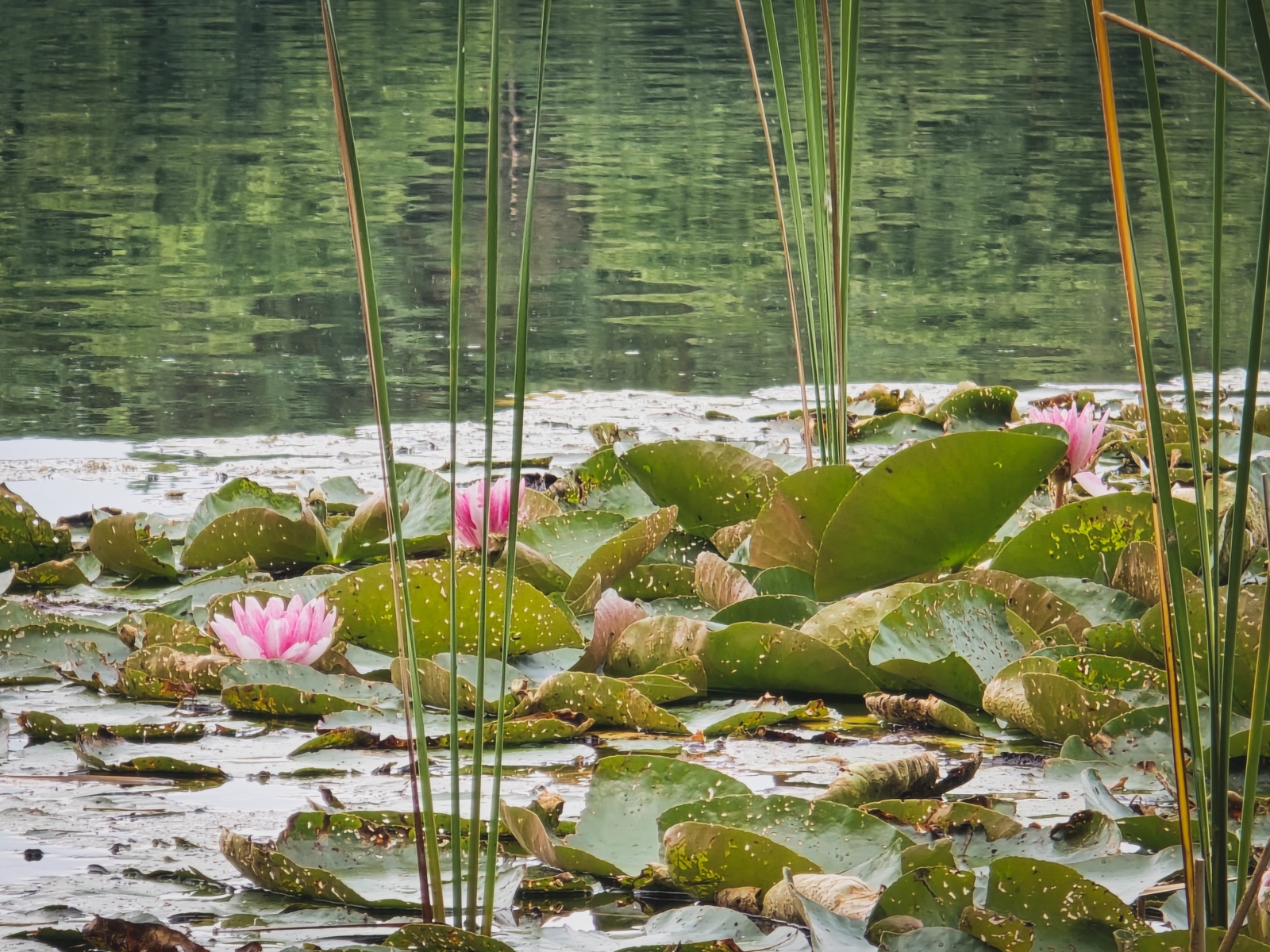 Also parkte ich Olga im erlaubten Bereich und machte mich mit Fritzi zu Fuss auf den Weg. Und eigentlich wollten wir eine schöne, weiträumigere Wanderung um den See machen. Da hatte ich aber die Rechnung ohne die Mücken gemacht. Denn die waren von dem feuchtwarmen Wetter überaus angetan und freuten sich über das Büffet in Wanderschuhen. Und wenn es etwas gibt, was ich gar nicht aushalte, dann sind es diese Plagegeister, die um mich herumschwirren und-surren und immer erst die Quittung von mir bekommen, wenn ich deren brennende Hinterlassenschaft unter meiner Haut spüre. Aaaarrrrghhh!